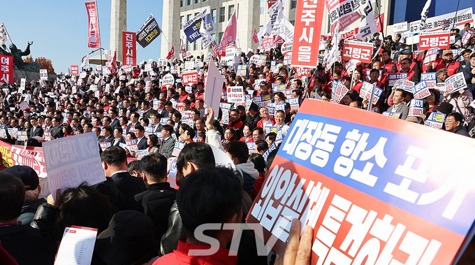 【STV 박상용 기자】국민의힘이 대장동 사건 1심 선고에 대한 검찰의 항소 포기 결정을 두고 정권 차원의 외압이 있었다며 강하게 반발했다. 당 지도부와 소속 의원, 당원들은 12일 서울 여의도 국회 본청 앞에서 ‘대장동 일당 7천400억 국고 환수 촉구 및 검찰 항소 포기 외압 규탄대회’를 열고 정권 책임론을 제기했다.