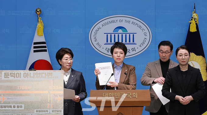 【STV 김형석 기자】국회 12·29 여객기 참사 국정조사특별위원회 소속 국민의힘 의원들은 9일 기자회견을 열고 무안공항 활주로 인근의 콘크리트 둔덕이 피해를 키운 핵심 요인이라는 취지로 정부의 책임 규명과 수사 확대를 요구했다. 국민의힘은 항공철도사고조사위원회(항철위) 연구용역 가운데 충돌 시뮬레이션 결과를 근거로, 둔덕이 없었다면 피해 양상이 달라질 수 있다는 취지의 결론이 제시됐다고 주장했다.