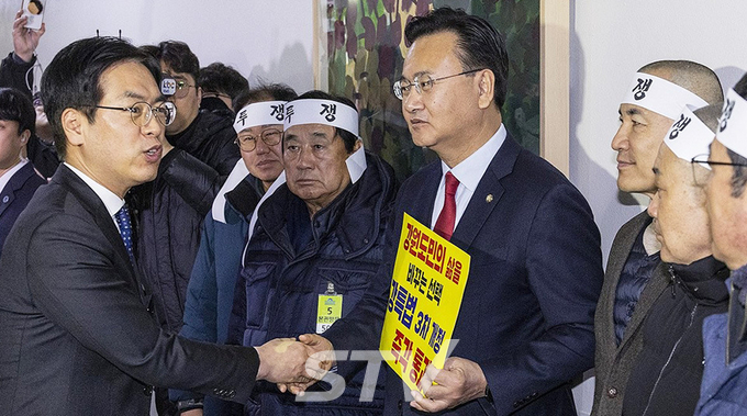 【STV 신위철 기자】김진태 강원지사가 강원특별법 3차 개정안의 조속한 처리를 촉구하며 국회에서 이틀째 삭발 및 천막 농성을 이어갔다. 김 지사는 전날 도민 3,000여 명과 결의대회를 연 뒤 투쟁 머리띠를 두르고 행안위 소위 회의실 앞을 지키며 개정안 심사를 강력히 요구했다.