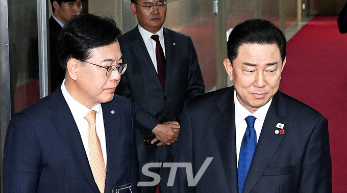 더불어민주당 김병기 원내대표와 국민의힘 송언석 원내대표는 이날 오전 국회에서 우원식 국회의장 주재로 회동을 갖고, 오후 2시로 예정돼 있던 본회의 개의를 오후 4시로 연기하기로 했다. 김 원내대표는 회동 뒤 기자들과 만나 "조금 더 논의하기 위해 본회의를 늦췄다"고 설명했다. 송 원내대표 역시 "양당 의원총회를 통해 총의를 모을 시간이 필요하고 숙의를 더 하기 위해 본회의를 미뤘다"고 했다.