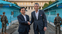 【STV 차용환 기자】한미 국방부 장관이 3일 오후 비무장지대(DMZ) 내 판문점 공동경비구역(JSA)을 함께 방문했다. 양국 장관이 JSA를 동시에 찾은 것은 2017년 10월 이후 약 8년 만이다. 국방부에 따르면 안규백 국방부 장관은 제57차 한미안보협의회의(SCM) 참석을 위해 방한한 피트 헤그세스 미국 국방부 장관과 함께 JSA 남측의 주한미군 기지 ‘캠프 보니파스’에서 회동했다. 헤그세스 장관은 오후 4시 32분께 주한미군 블랙호크(UH-60) 헬기를 타고 도착했으며, 두 장관은 DMZ 최북단 경계초소인 오울렛 초소(OP)를 비롯해 판문점 내 회담장 등을 약 1시간 동안 시찰했다. 오울렛 초소는 군사분계선(MDL)에서 불과 25m 떨어진 곳으로, 2019년 도널드 트럼프 당시 미국 대통령이 문재인 대통령과 함께 방문한 장소다. 두 장관은 한미 경비대대 지휘관으로부터 작전 현황을 보고받고 현장 상황을 점검했다. 안 장관은 “헤그세스 장관이 한미가 비무장지대에서 공동으로 수색작전을 수행하는 모습을 보고 깊은 인상을 받았다”며 “연합방위태세의 공고함과 작전 수준에 만족감을 표시했다”고 전했다. 이어 “헤그세스 장관은 판문점 방문 전 분단선이 단순히 직선
